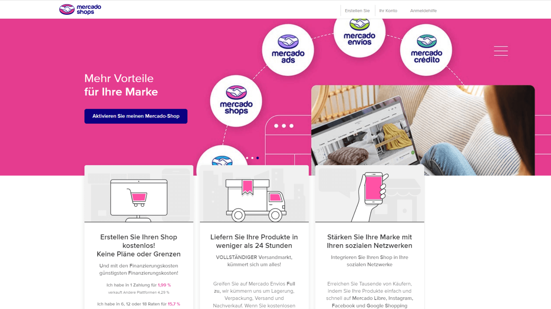 Mit Mercado Shops geht das Unternehmen wieder in die Richtung des Geschäftsmodells von Amazon – auch hier können Händler ihre eigenen Shops (Front-End-Design) integrieren. Das Prinzip von Shopify wird ebenfalls angeschnitten.