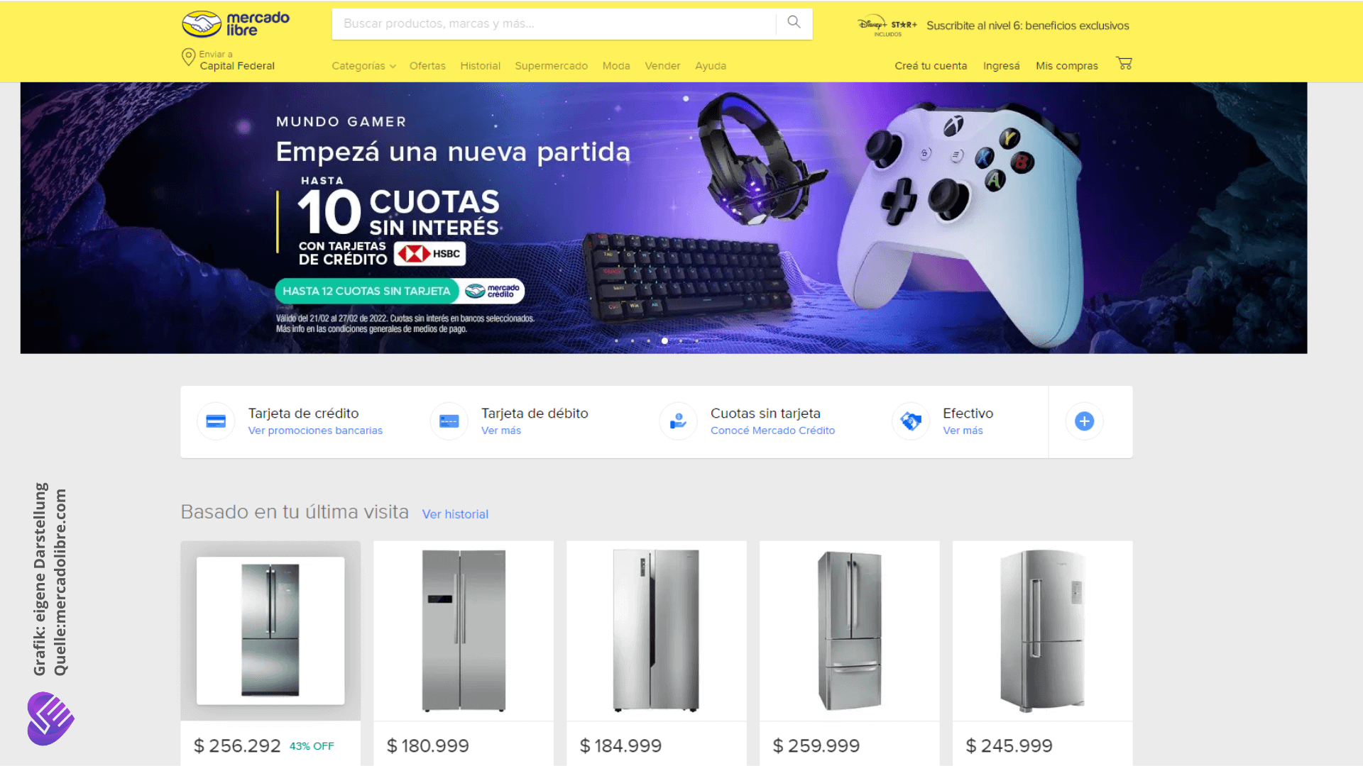 Der Shop von Mercado Libre ähnelt sehr dem Design von Amazon.com, obwohl wir ihn tatsächlich rein optisch gesehen attraktiver finden. Im Shop findet sich so gut wie alles. Das Sortiment reicht von Lebensmitteln über Körperpflege über Kühlschränke und Gaming-Equipment bis hin zu Mähdreschern und Autos – alles Online von Mercado Libre selbst oder Dritten angeboten.