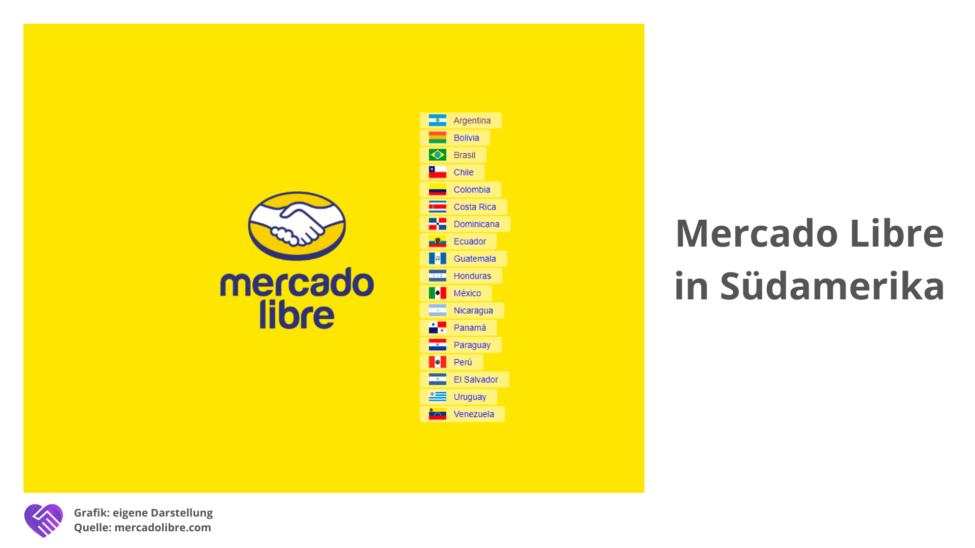 “Mercado Libre” bedeutet „Freier Markt“. Eines der Unterkategorien, die das Unternehmen anbietet ist die Logistik für Händler. Ganz im Stil von „Fullfilment by Amazon“, dem klassischen Dropshipping Prinzip. Händler können ihre Waren über Mercado Libre verkaufen und optional übernimmt das Unternehmen gegen Gebühren sämtliche Logistik- und Supportprozesse.